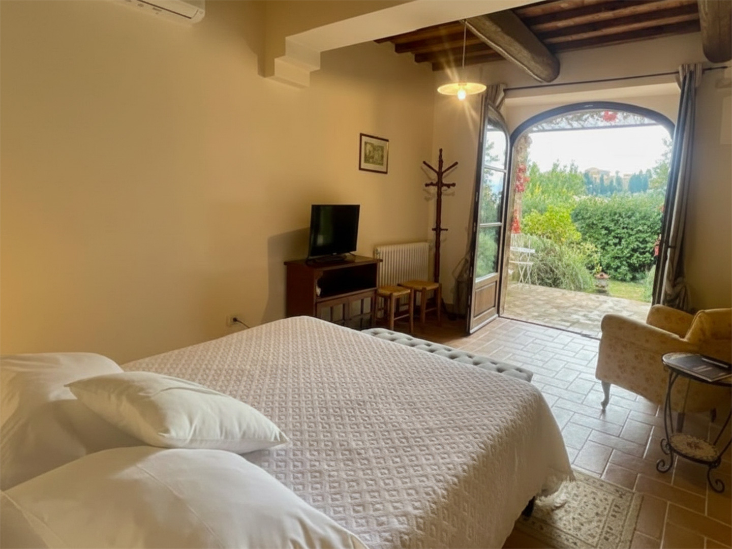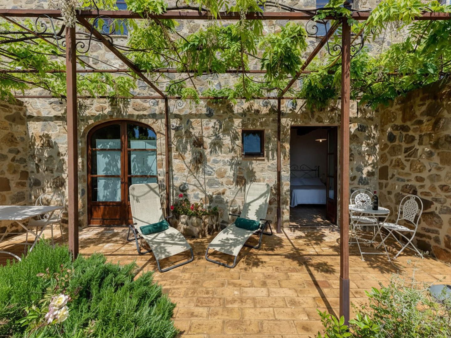 A relaxing spot immersed in greenery, perfect for enjoying the silence and light of the Tuscan countryside.